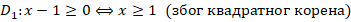 Да би једначина имала реална решења по x (домен функције је скуп R), дискриминанта једначине мора бити већа или једнака од нуле, па следи